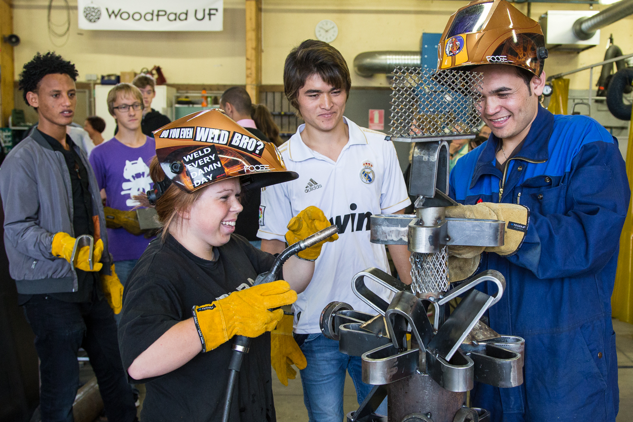 Aktiviteterna var minst sagt framtagna för att det skulle skapas gemenskap och lagkänsla. Det handlade hela tiden om att hjälpas åt i allt från att bilda ord till att skapa en form av staty genom att svetsa och stämningen i de olika grupperna var på topp.