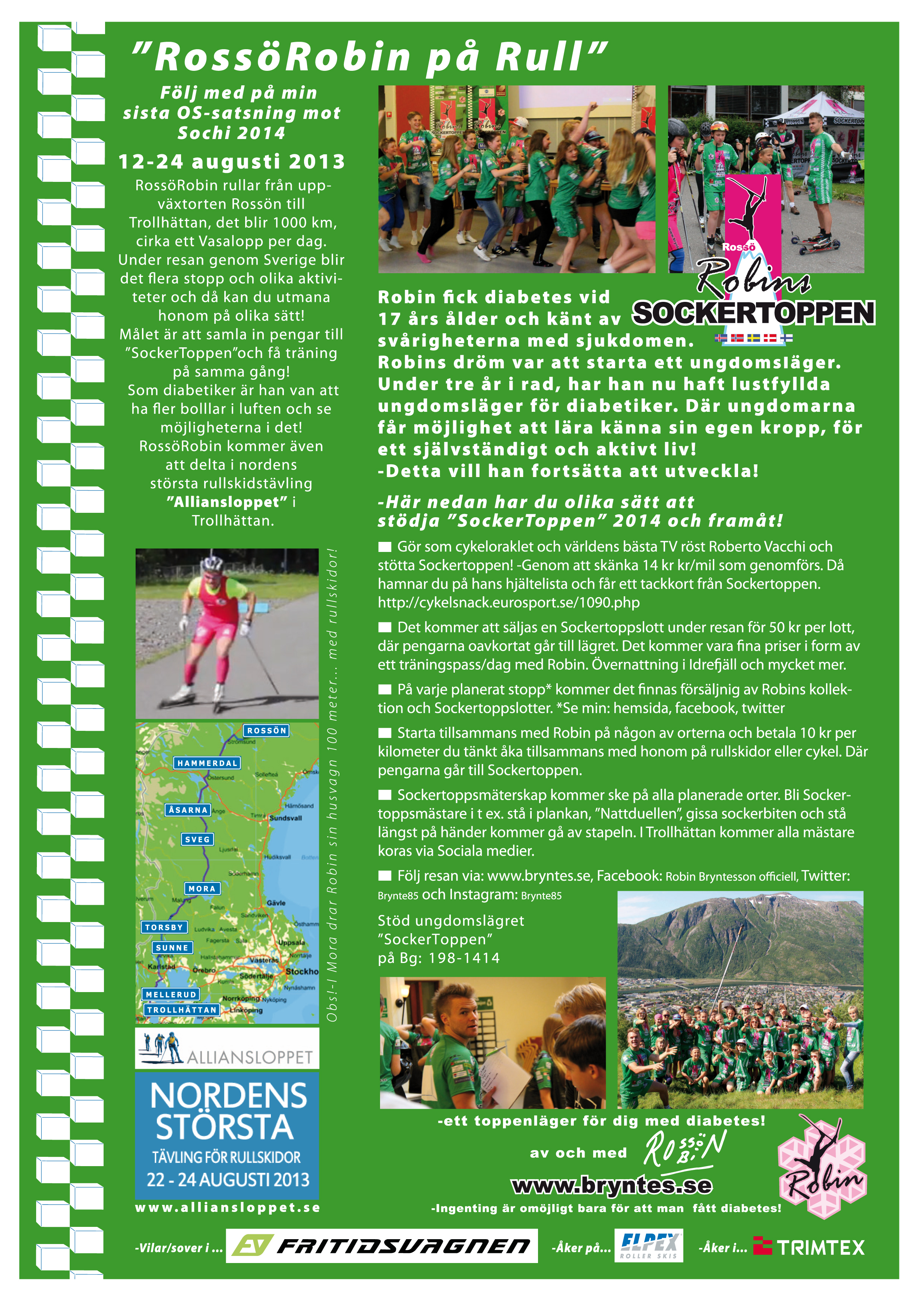 Projektet går ut på att samla in pengar till "Sockertoppen", ett läger för idrottande ungdomar med diabetes.