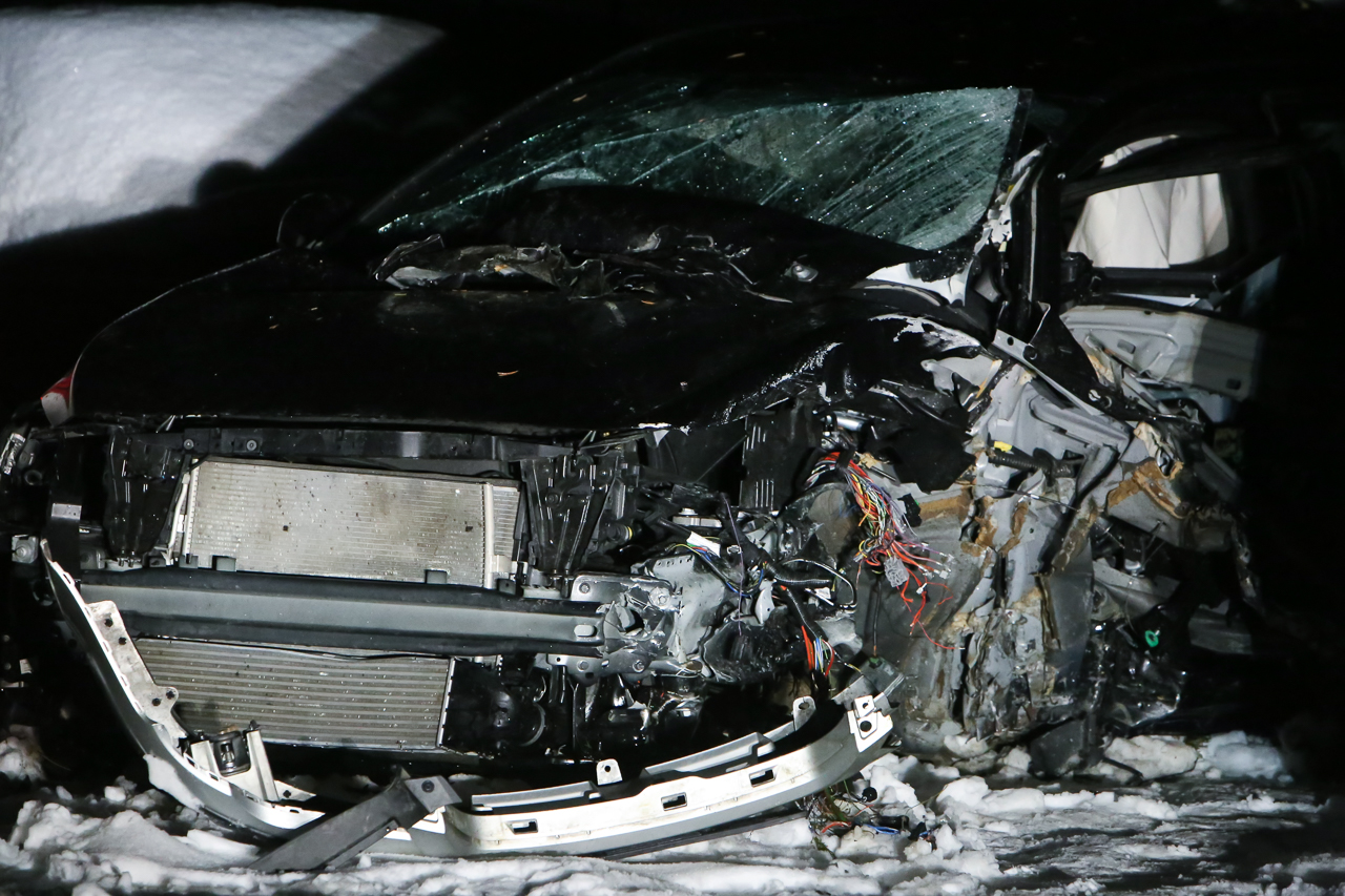 Efter en vårdslös färd från Östersund tog det stopp i en våldsam frontalkrock på E45 strax utanför Sveg under tisdagseftermiddagen. Foto: Morgan Grip